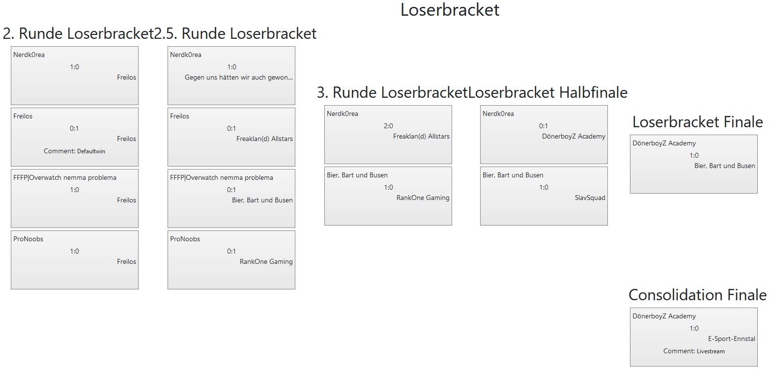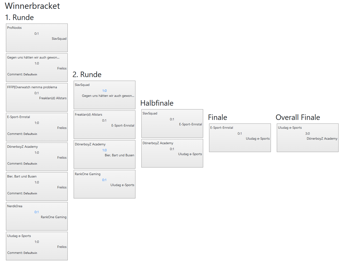 | 9 | Gegen uns hätten wir auch gewonnen | 35OX, Bekloppte_, Larema, MikasWelt, UnicornSwaag, frostbite09 |